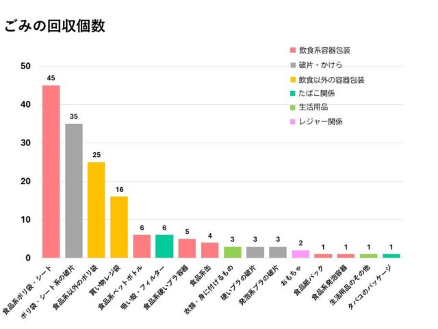 ターゲットが水面に浮いているごみに特化しているのでポリ袋系が多い結果となりました。