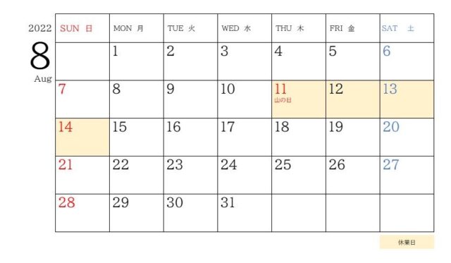 ■夏季休業期間:2022年8月11日(木)~8月14日(日)