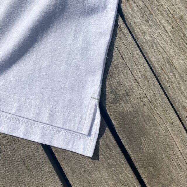 生地はリサイクルコットン50%とリサイクルポリエステル50%混率の100%リサイクル原料で、とても軽く柔らかい仕上がり。生地の乾きが早く、多少の汗ではベタベタしないので、